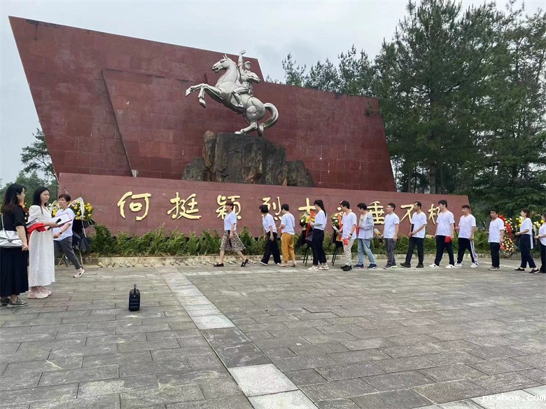 随后,全体党员在何挺颖烈士纪念广场进行了庄严的纪念仪式。面对鲜红的党旗,支部全体党员高举右拳,在支部书记刘卫同志的带领下重温入党誓词,铿锵有力的誓词,展现了我支部党员同志昂扬奋进的精神状态,更体现了作为党的教育工作者,旗帜鲜明讲政治,始终听党话、跟党走的坚定决心。随后党员代表向何挺颖同志敬献花篮,全体党员同志敬献鲜花。大家神情庄重,整齐列队向安埋在陵园的红军烈士默哀致敬。