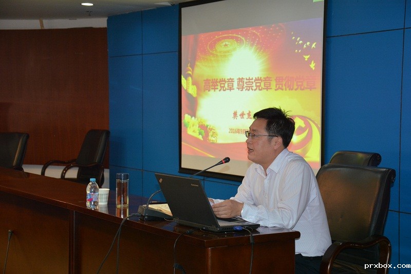 最后,樊世杰书记以“高举党章 尊崇党章 贯彻党章”为题,结合当前开展的“两学一做”专题学习活动和我校实际情况,给全校党员上了一堂深刻生动的党课。他从高举党章、尊崇党章、贯彻党章三个方面讲了学习党章、争做合格党员的重要性和必要性。他提出党员要唤醒四种意识,即政治意识、大局意识、核心意识、看齐意识。他希望全校党员都能把学好新《党章》贯穿于“两学一做”学习教育的始终,并且把党章作为指导自己今后学习和工作的指路明灯,学习党章和党课要自觉联系自身思想实际和工作实际,认真学、反复读,细心领会,深入思考,融会贯通,学以致用,为学校发展贡献力量。