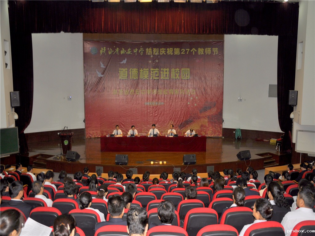 在我国第27个教师节来临之际,我校举行了隆重的庆祝暨表彰大会。大会由党委书记赵文宏主持,会上,李文耀副校长宣布了先进集体的表彰决定,薛锋副校长宣布了教育教学科研成果奖、优秀课例和班主任德育论文获奖情况,雷琪平副校长宣读了“西中名师”和先进个人的表彰决定。教师代表李萍老师发言,表达了老师们“把教书育人当做崇高的理想与毕生的事业去追求”“将课堂当做学生成长的摇篮,当做师生向往的智慧乐园和人生殿堂”的心声。高2012届5班的王博同学代表全校学生向老师献词:“天荒地老,青春不老;山高水长,师恩难忘!”诚挚的话语感动了在场的所有老师,让老师们从内心里感到了教师这个职业的幸福感。校长张克强希望老师们要“忠诚教育事业、热爱关心学生,做爱岗敬业的楷模;刻苦钻研、提升素质,做终身学习的标兵;奋发进取、开拓创新,做教育改革的先锋;以身作则、为人师表,做立德立人的典范!” 表彰大会之后,学校邀请“陕西省道德模范故事汇”走进校园,为全校教职工讲述了全国和我省道德模范人物的感人事迹,把学校师德教育系列活动推向新的热潮。 此次“道德模范进校园”,是由省委宣传部、省文明办、省教育厅、省文联联合主办,省曲艺家协会和我校共同承办,邀请到了西安市说唱艺术团国家一级演员白海臣、陕西省曲协副主席、著名相声演员于海涛、著名小品演员王培通等各界曲艺演员,运用快板、相声、评书、故事等群众喜闻乐见的曲艺形式,讲述了“见义勇为的英雄戴俊、用生命铸就警魂的罗春明教导员、西安最美女孩熊宁、为残疾儿童奉献爱心的礼泉普通妇女陈海燕、中铁一局金牌工人窦铁成”的事迹。感人至深的故事、真实鲜活的形象、真切动人的表演、崇高善良的人性光辉、宽广仁厚的道德力量,带给在场的老师们深深的触动和感受,为老师们上了一堂鲜活生动的师德教育课。工会陈玉红主席向艺术家们表示真诚的答谢:“榜样的力量是无穷的,道德模范们以他们的先进事迹,传播了善行义举,弘扬了社会正气,传递了人间大爱。身为教师,我们担负着教书育人的历史使命,学高为师,身正为范,我们只有不断内强素质、外塑形象,才能以德成就德,才能用爱教会爱。” 学校还邀请了学生代表参加大会,同老师们一起聆听了模范人物的感人故事。(信息中心 张莉)