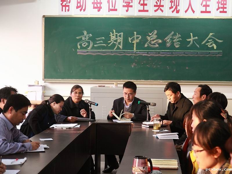 2011年11月9日下午,在我校高三年级备课室,召开了高三年级期中总结大会。雷琪平副校长出席,梁雅君、李崇超、王燕、张永强、阳静等年级部和处室主任以及高三年级全体教师参加了大会。会议由高2012届年级部主任梁雅君主持。