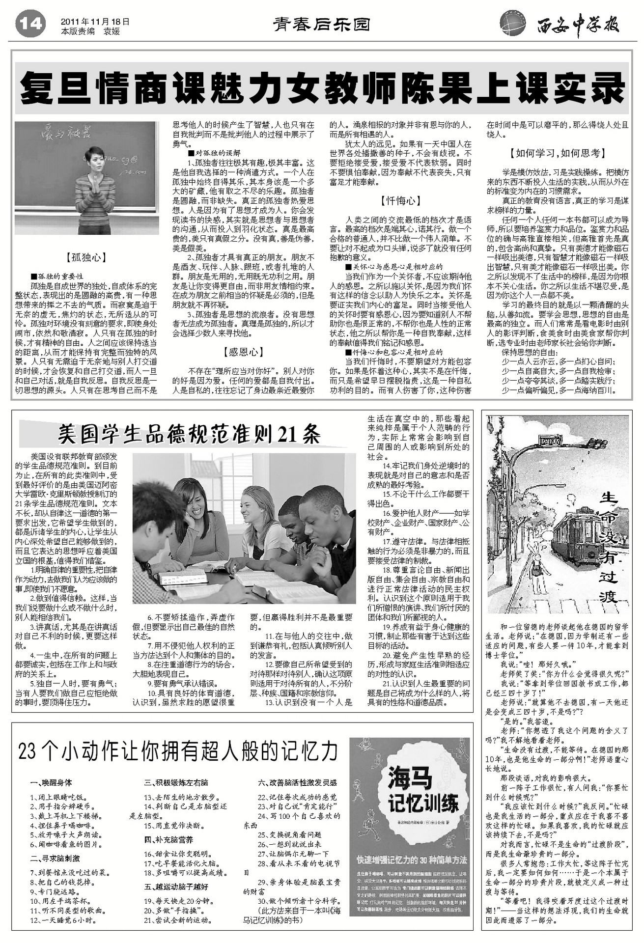 所属分类:西中校报 阅读次数:2520 发布者:工会管理员 发布时间:2011-11-21
